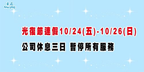 【光復節休假公告】光復節假期10/24(五)-10/26(日)公司暫停服務...